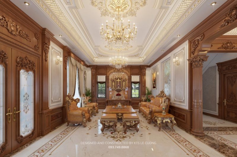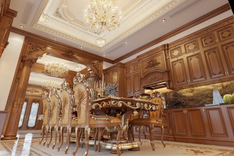 Bên trong, mỗi không gian là một câu chuyện nghệ thuật: phòng khách với trần cao dát bạc lấp lánh như bầu trời sao, phòng ăn ngăn cách tinh tế bằng lam gỗ CNC vẽ nên bức rèm ánh sáng ấm áp, phòng ngủ master ẩn mình sau lớp rèm nhung sang trọng, sàn đá marble vân mây nâng bước chân nhẹ nhàng như lướt trên mây. Tổng mức đầu tư 2,9 tỷ VNĐ không chỉ phản ánh giá trị vật chất mà còn là minh chứng cho tầm nhìn và đẳng cấp thượng lưu của gia chủ – một tuyệt tác sống động giữa lòng Thanh Hóa.