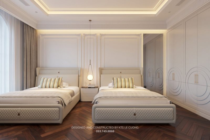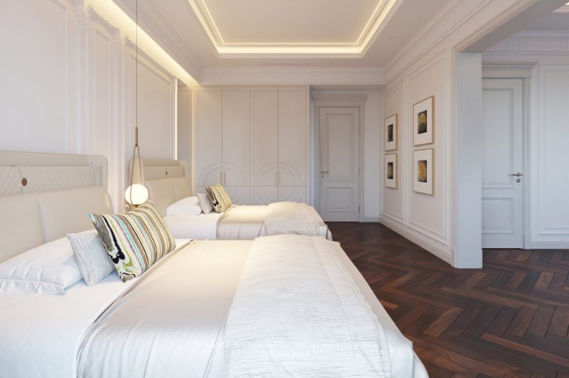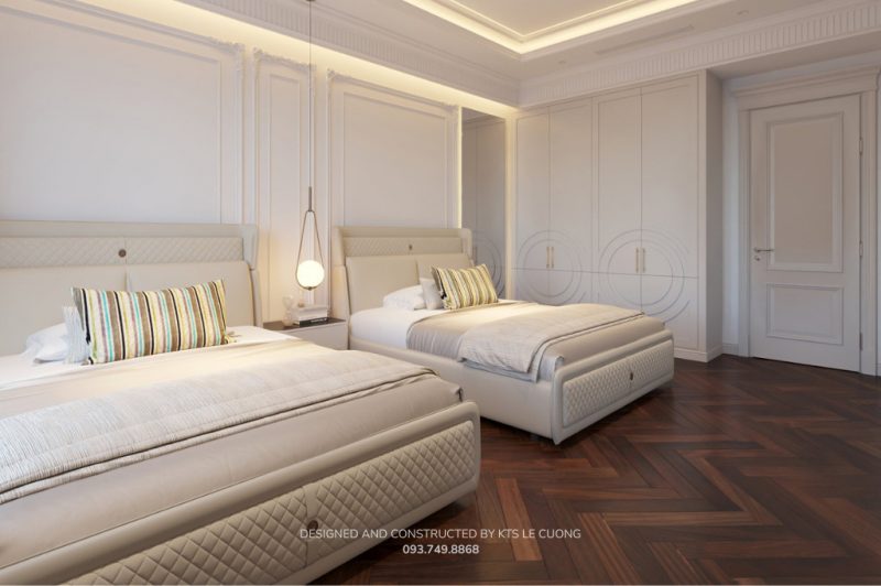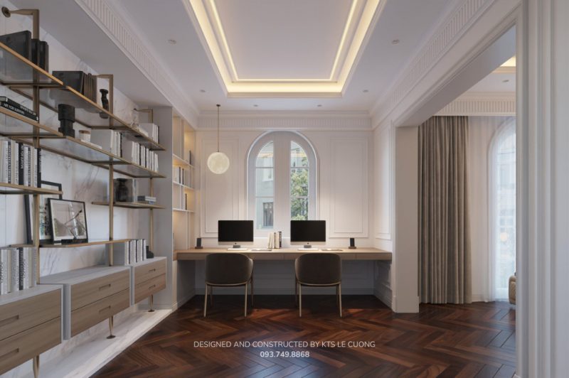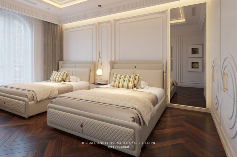 Biệt thự anh Nguyễn ở Đường Nội hiện lên khỏe khoắn và tinh tế trên nền đất 528 m² với diện tích xây dựng 176 m², mặt tiền 11 m và chiều sâu 16 m. Dáng nhà cân đối, đường nét mạnh mẽ pha lẫn nét mềm mại ở các mảng phào chỉ, tạo nên tổng thể vừa trang trọng vừa gần gũi. Màu trắng chủ đạo kết hợp điểm nhấn ốp đá vân mây và lam gỗ tạo chiều sâu thị giác, đồng thời hài hòa với cảnh quan sân vườn xanh mướt.