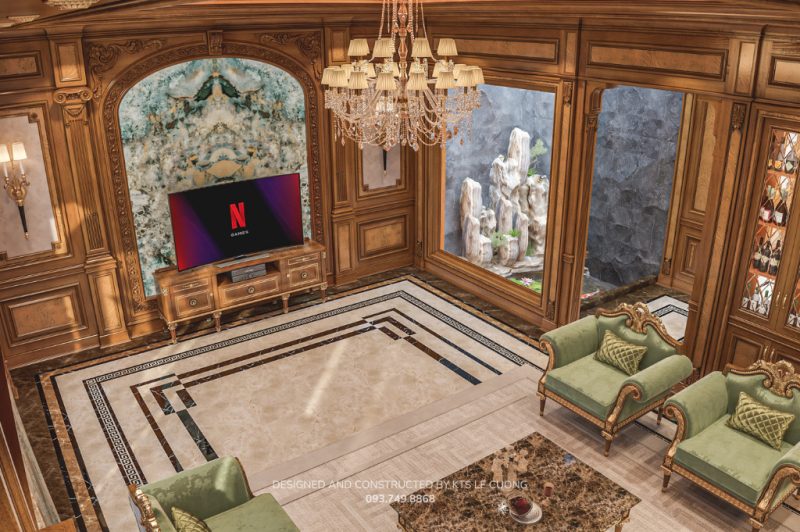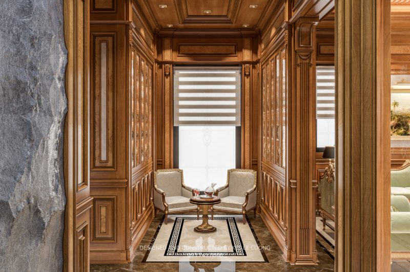 Biệt thự vợ chồng Em Nhung – Mỹ (Mỹ Đức) nổi bật trên lô đất 305 m² với diện tích xây dựng 135 m², mặt tiền 9 m và chiều sâu 15 m. Công trình khoác lên mình phong cách hiện đại thanh lịch, nơi hình khối kiến trúc giản lược tối đa nhưng vẫn toát lên vẻ sang trọng nhờ những mảng kính lớn và các đường nét vuông vức dứt khoát. Ánh sáng tự nhiên ngập tràn qua hệ cửa sổ kính, kết nối không gian nội thất với sân vườn xanh mát bên ngoài.