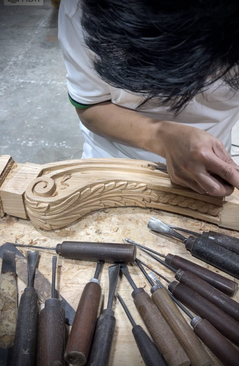 Mỗi chi tiết được đục tay công phu bởi nghệ nhân lành nghề, mang đến vẻ đẹp sang trọng và đậm chất nghệ thuật cho không gian nội thất cao cấp.